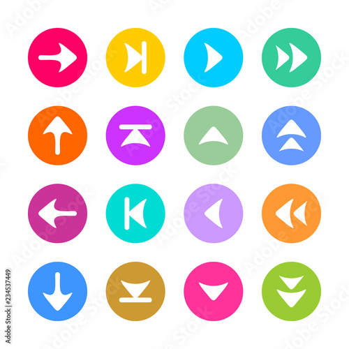 Arrow sign icon set in flat style. Vector elements of hand drawing arrows on color circle shapes