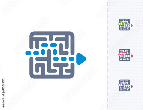 Arrow Through Maze - Vibrant Imprint Icons . A professional, pixel-aligned icon .