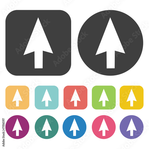 Arrow up icon. Mouse cusor sign icons set. Round and rectangle c