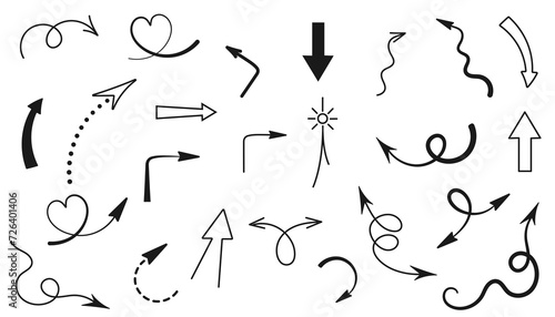 Arrows Doodle Set, Sketch Line Pointers, Arrows Doodle Icons Set, Collection Web Decorative Elements, Icon, Outline, Sketch, Scribble, Hand Drawn