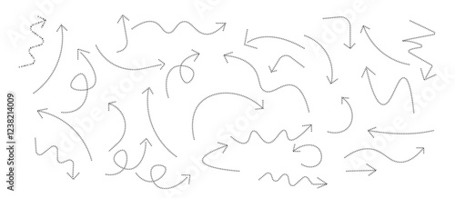 Arrows hand drawn doodle icons set on white background. Curved cartoon arrows sketches collection. Sign, Symbol, Hand drawn arrow collection