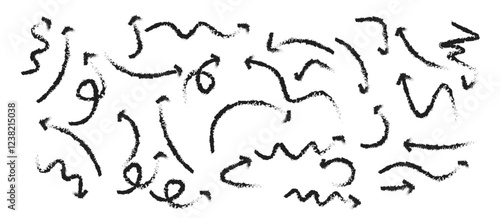Arrows hand drawn doodle icons set on white background. Curved cartoon arrows sketches collection. Sign, Symbol, Hand drawn arrow collection