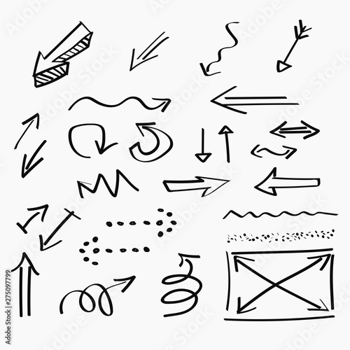 Arrows hand-drawn icons and abstract doodle writing design
