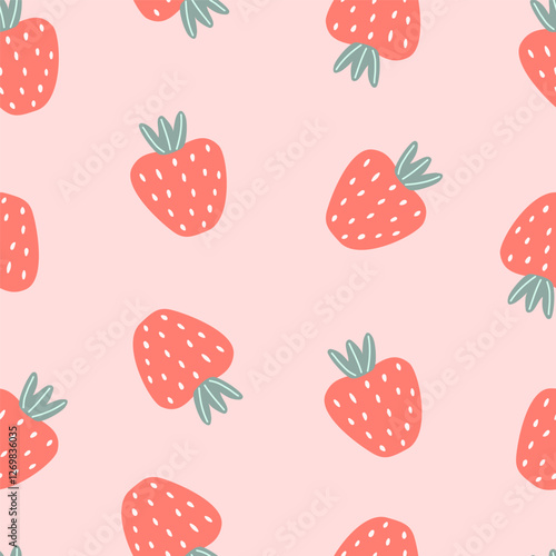 Art & Illustration.Seamless pattern with cute strawberry berry on pink background. Vector illustration for printing. Cute baby background.