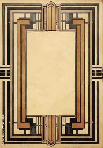 art deco border frame, rich pale tea-stained paper, centre white rectangle