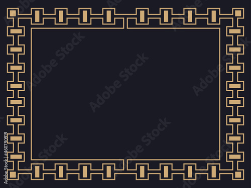 Art deco frame. Vintage linear border. Design a template for invitations, leaflets and greeting cards. Geometric golden frame. The style of the 1920s - 1930s. Vector illustration