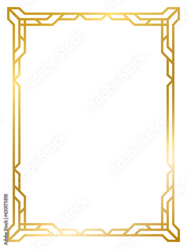 Art Deco gold frame vintage frame line geometric wedding label card frame png transparent background