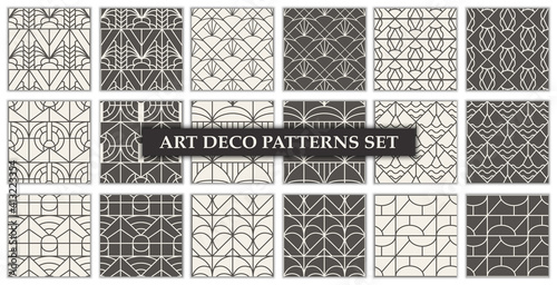 Art Deco Patterns set. Seamless black and gold backgrounds.