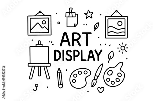 Art Display Doodle. Art Display. Hand-drawn doodle illustration of Art Display. easel, framed painting, canvas