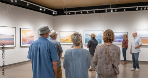 Art gallery visitors exploring contemporary exhibition in modern museum space