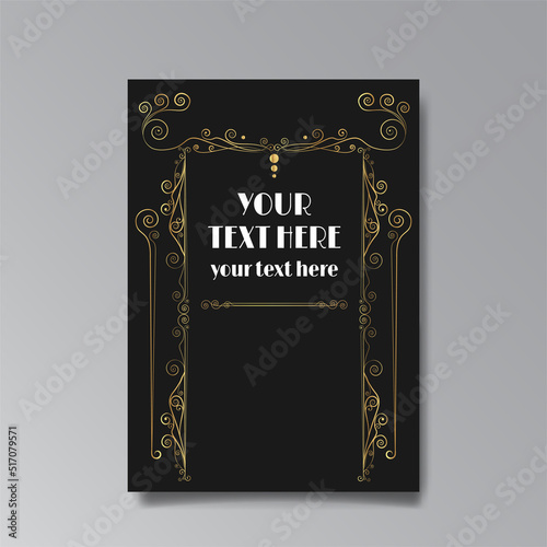 Art Nuevo template golden-black white, A4 page, card, invitation, floral lines and swirls ornament