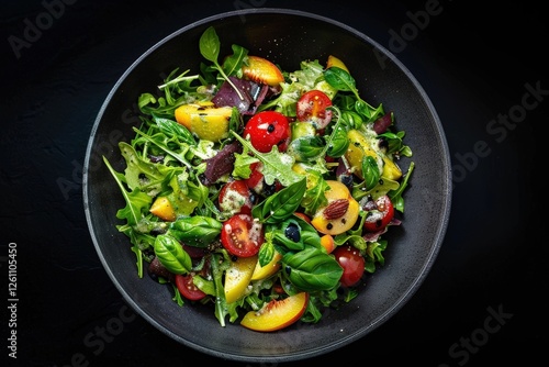 Artful Arrangement of Fruits Vegetables and Basil