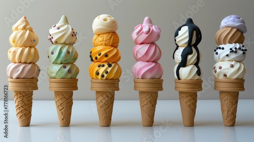 Artful Assortment of Colorful Clay Ice Cream Cones in Diverse Flavors and Styles