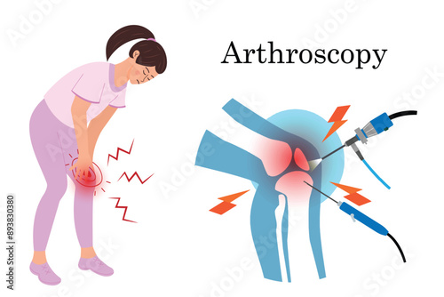 Arthroscopy Procedure: Knee Pain and Joint Treatment with Arthroscope. Medical Illustration of Minimally Invasive Surgery