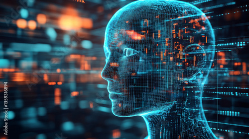 Artificial intelligence and computer mind. High technologies, network database. Realistic 3D illustration
