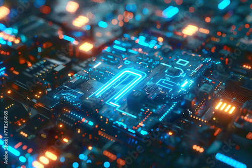 Artificial intelligence and machine learning technology with finger touching AI processor on electronic circuit.