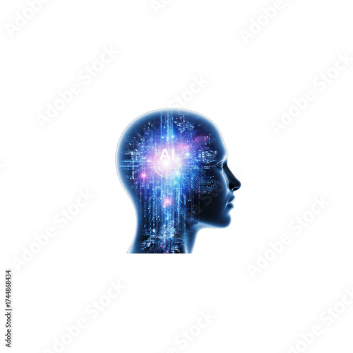 Artificial Intelligence Brain Concept Glowing Human Head with AI Circuitry and Digital Data