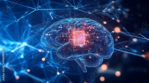 Artificial Intelligence Concept - Digital Brain with Network Connections.