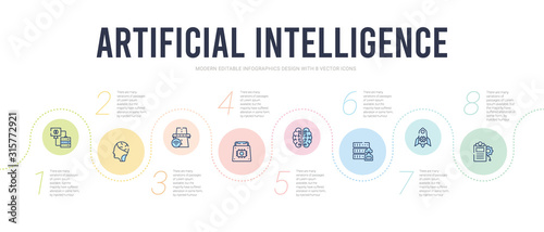 artificial intelligence concept infographic design template. included check list, rocket, secure data, brain, shopping bag, motorway icons