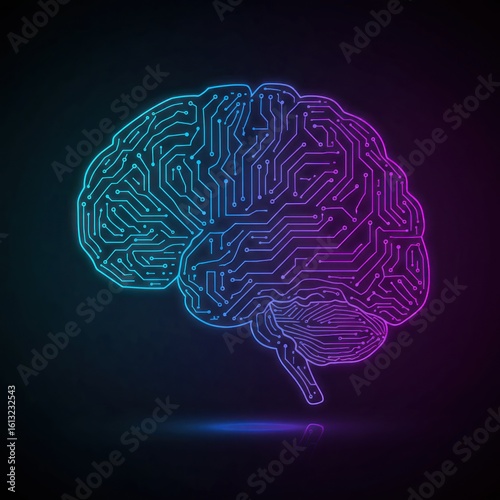 Artificial intelligence concept with a glowing brain circuit. Digital mind and futuristic technology illustration.