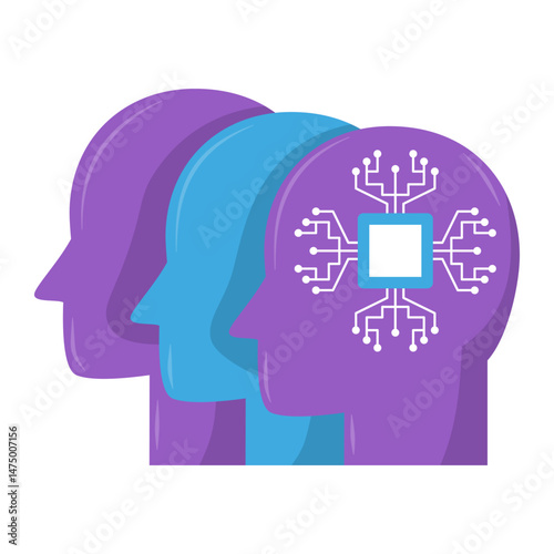 Artificial Intelligence Concept with Human Heads and Circuit Chip