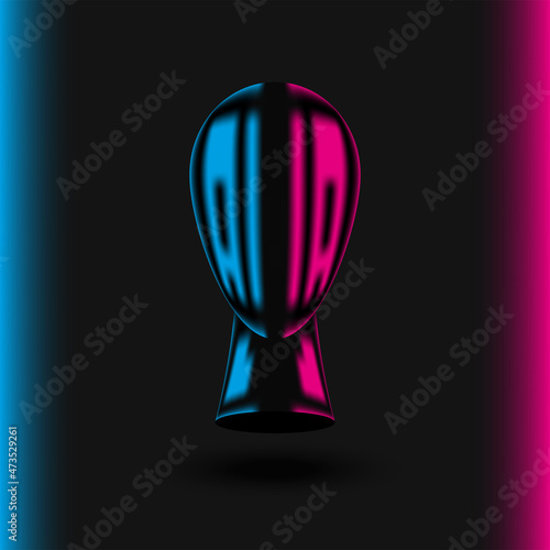 Artificial intelligence cyberpunk concept, 3d black robot head with neck with purple blue neon shadows in the form of AI letters.