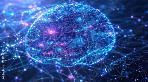 Artificial intelligence data circuit in cyberspace computing concept. Abstract representation of a digital brain with glowing circuits.