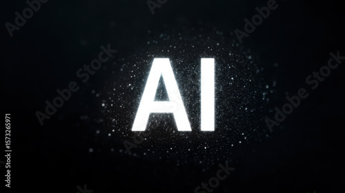 Artificial intelligence glowing letters with digital particles on dark background, futuristic technology concept