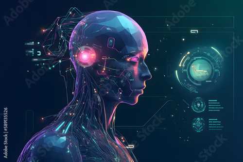 Artificial intelligence illustration. humanoid robot illustration diagram device Generative AI