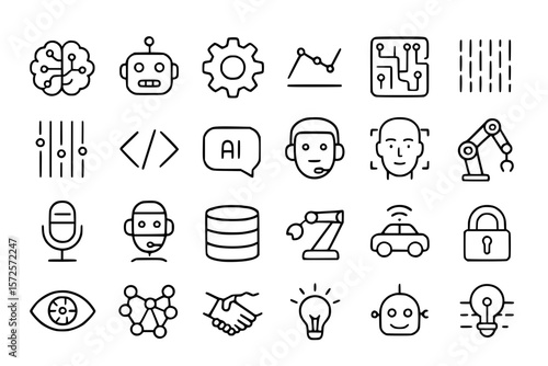 Artificial Intelligence Line Icons Set - AI Technology, Machine Learning, Robotics, Automation Vector Collection