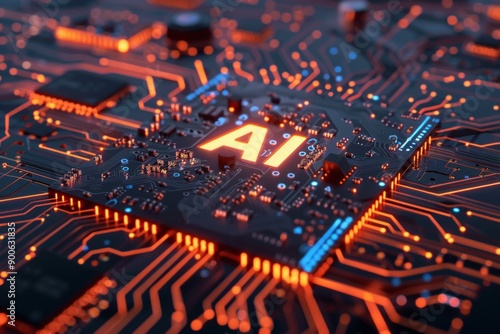 Artificial intelligence micro chip with the word AI stamped on the chip