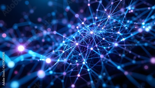 Artificial Intelligence Neural Network with Glowing Nodes and Connections