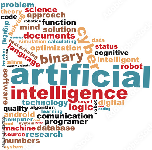 Artificial Intelligence Word Cloud Illustration. AI related text tags isolated vector.