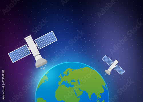Artificial satellites orbiting the planet Earth. Artificial satellites orbiting the planet Earth, GPS. Vector stock illustration.