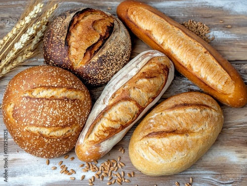Artisan Breads Close-up on Rustic Wooden Surface - Homemade Bakery Variety in Warm Setting Food Photography for Blogs and Recipes