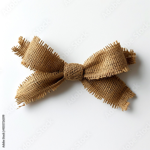 Artisan burlap bow tied delicately on a white surface, showcasing rustic charm