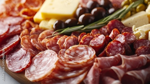 Artisan Charcuterie Boards Displaying a Variety of Cured Meats and Cheeses with Accompaniments on Table Against Plain Background