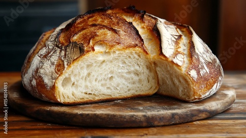 Artisan Crusty Bread Loaf on Rustic Wooden Board