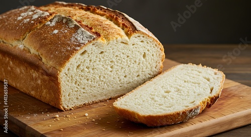 Artisan Crusty Loaf: Rustic Bread, Golden-Brown, Wooden Board