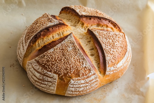 Artisan Sesame Seed Loaf Crusty, Golden, Baked Bread