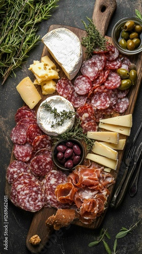 Artisanal Charcuterie Platter with Cheese and Fresh Herbs Display
