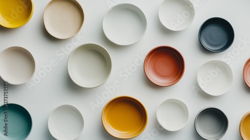 Artisanal Dining Aesthetic Vibrant Ceramic Plates in Circular Display - Contemporary Social Media Content for Community Dining and Hospitality Marketing
