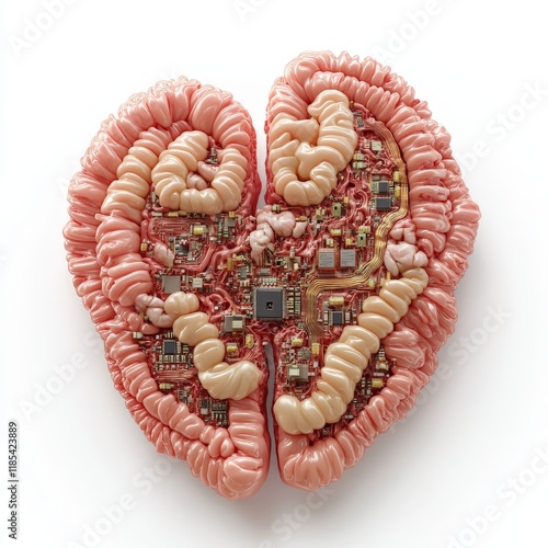 Artistic anatomical rendering of a human heart and intestines interconnected, symbolizing biological complexity and the intricate design of the human body