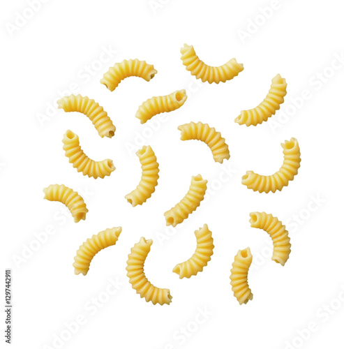 Artistic Arrangement of Ridged Pasta Shapes Celebrating Italian Culinary Craftsmanship, Isolated on Transparent and White Background