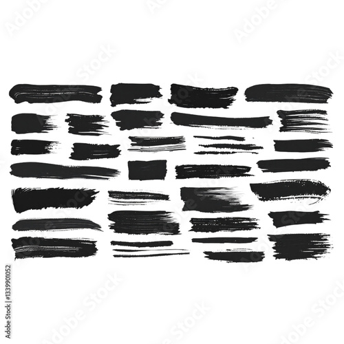 Artistic black paint brush strokes on Transparent Background