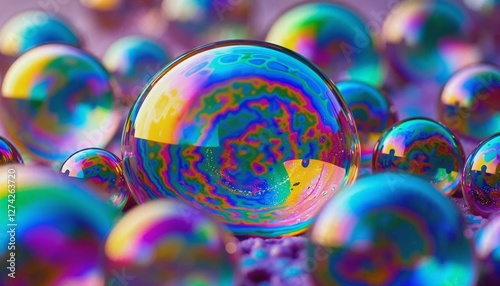 Artistic close-up of a soap bubble resembling a miniature planet with vibrant colors