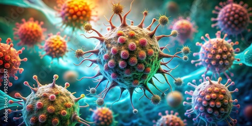 Artistic depiction of cancer cells evading immune surveillance, allowing uncontrolled proliferation within the body