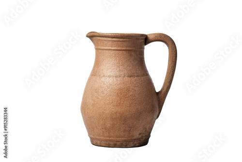 Artistic Earthenware Pitcher Captured in Natural Light on Rustic Wooden Table on Transparent PNG Background.