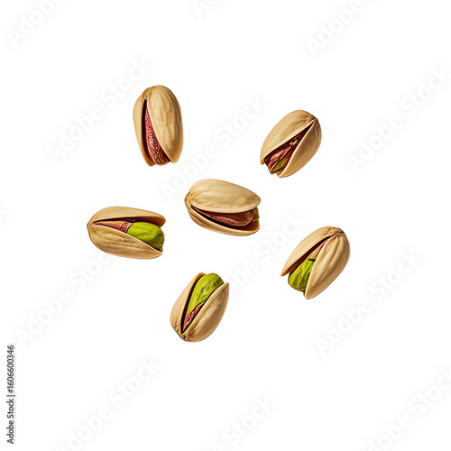 Artistic Flat Lay of Pistachio Nuts Isolated on White Background, Generative AI