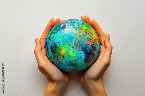 Artistic hands gently cradling a vibrant globe symbolizing global unity and environmental awareness